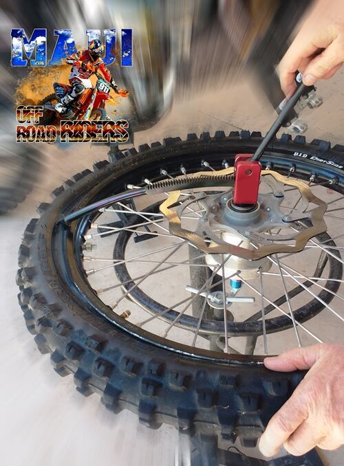 No Pinch Tire Tool will Simplify the installation of your motorcycle tires. The powerful rack and pinion system pushes the tire over the rim, eliminating the chance of a pinched inner tube during installation. The Tool is constructed to be both lightweight and strong and can easily be carried in your travel pack. It comes standard with a 20mm axle shaft. The No Pinch Tire tool will work on all wheel sizes from 16″ to 21″ with axles sizes 20mm to 23mm.