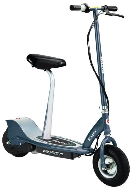 The thrill of power meets the latest technology and high-quality materials that Razor is known for – in the form of electric scooters. Built with “green” commuting in mind, the E300S electric scooter features a detachable seat for easy cruising. With larger deck, frame and tires for older teen and adult riders, the E300S electric scooter is Razor’s speediest electric scooter – traveling up to 15 miles per hour. The environmentally-friendly electric power engages a super quiet chain driven motor – applauded by neighbors everywhere. Razor offers a range of electric scooters for ages eight to adult (E100, E200, E200S, E300 and E300S) – just match your age and weight to find your power ride.