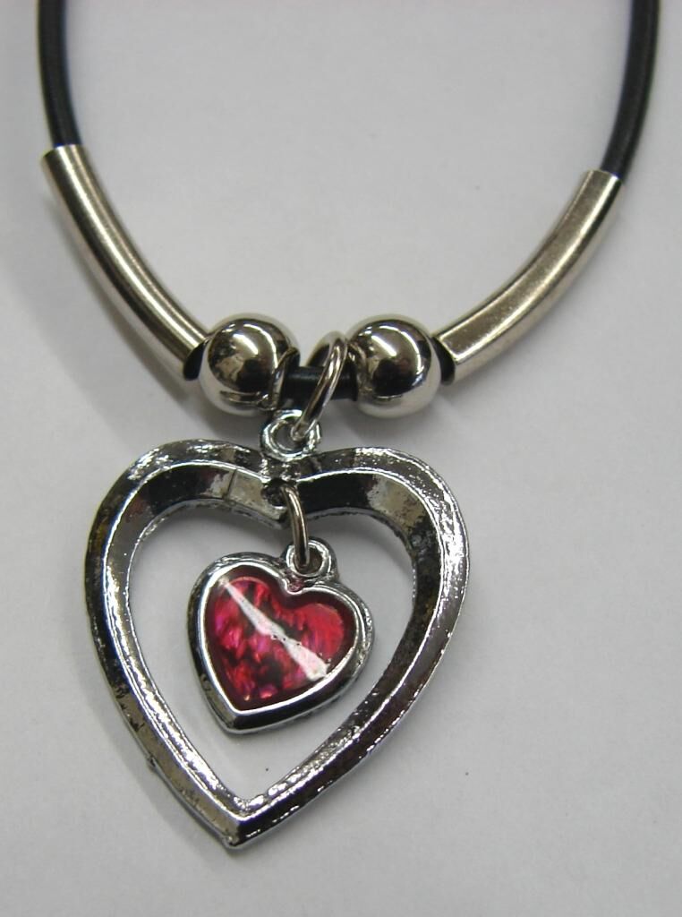 Beautiful rubber necklace with a double heart pendant.